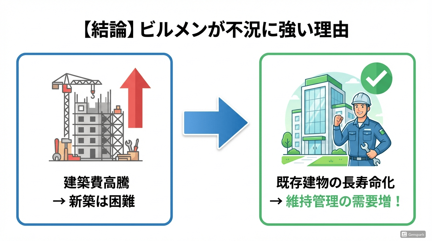 【結論】不況でもビルメンが安定する最大の理由は「既存建物の長寿命化」