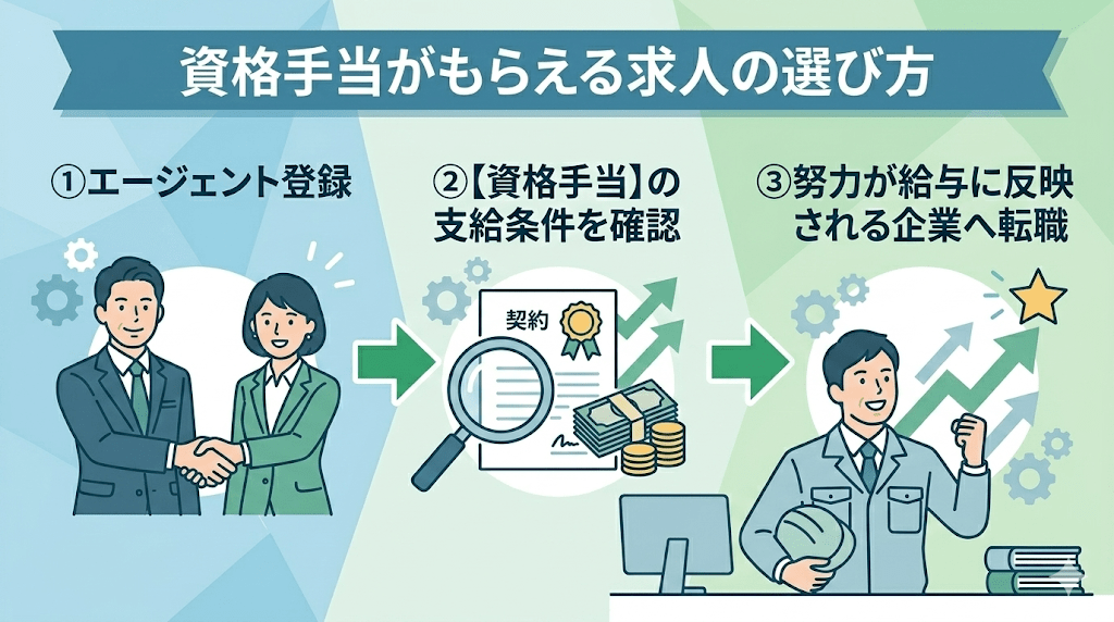 転職の際は、「資格取得を毎月の資格手当として確実に還元してくれる現場」を選ぶことが大切です。