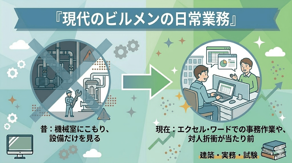 まとめると、『大前提として設備の知識は必須だが、エクセル作業やテナント折衝が当たり前になった現代のビルメンにおいて、前職の事務スキルや対人スキルは最強の武器になる』ということです。