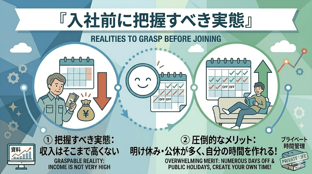 しかしその代わり、『明け休み』や『公休』が非常に多く、自分の時間を作りやすいという圧倒的なメリットがあります。