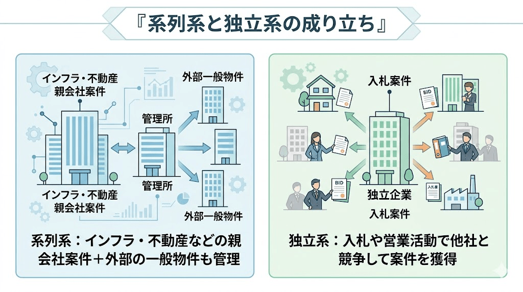 - 系列系と独立系の成り立ちと、管理する物件の違い