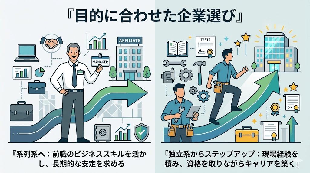 ここで現場経験を積み、資格をしっかり取得してから、より自分に合った企業(別の独立系優良企業や系列系など)へキャリアアップしていくルートも、この業界ではごく一般的です。