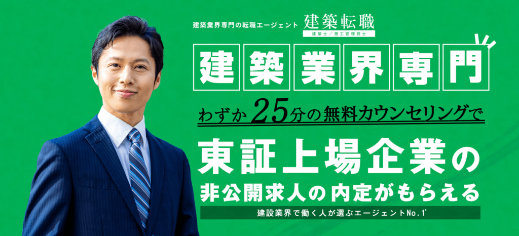 | 建築転職 👉公式サイト | ★★★★★ | ビルメン軸で探す本命候補 | 最優先 |